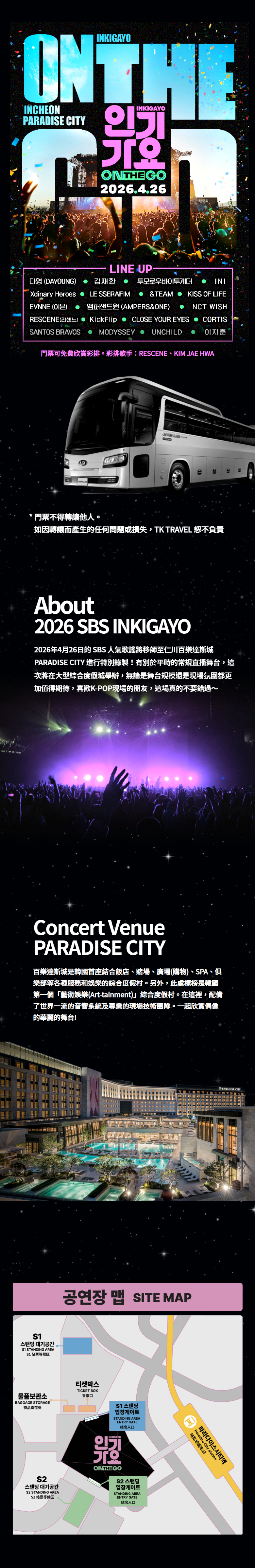 · 入場截止時間之後有可能無法入場或站席會被變動。
