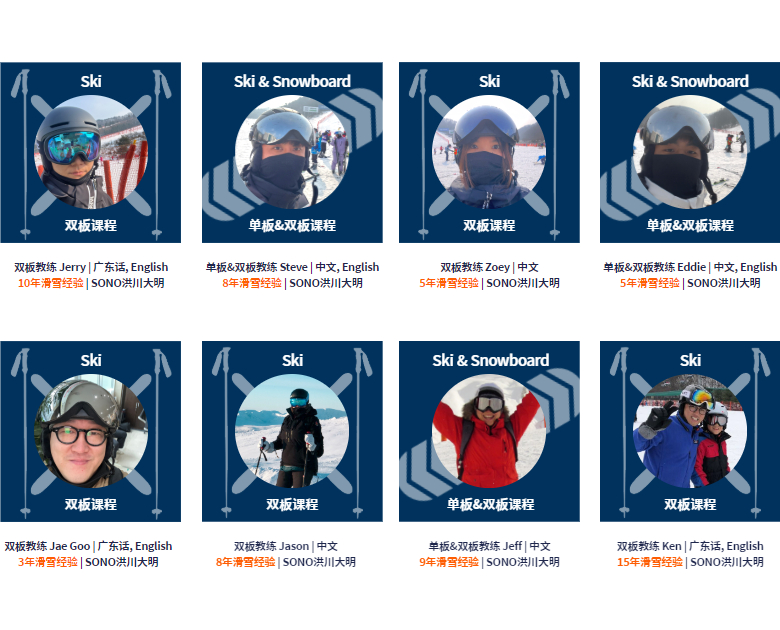 · 一位滑雪指导员最多对15~17位学员。