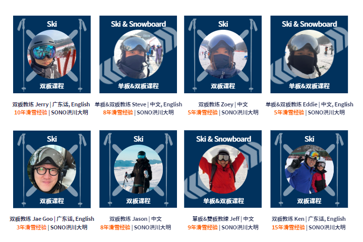 · 一位滑雪指导员最多对15~17位学员。
